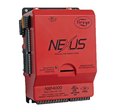 O Nexus NXF4000 é um avançado controle e gerenciamento de eficiência de combustão que inclui sistema de segurança de chama. Feito para queimadores de combustível líquido ou gasoso, suporta até quatro servomotores e dois canais VFD por perfil de queima. Possui interface opcional touchscreen, 15 entradas digitais configuráveis, prova de estanqueidade opcional, proteção contra choque térmico, espera em demanda (hot standby) entre outros recursos. Acessórios incluem ponta de oxigênio, controle mestre centralizado para uso de vários Nexus de forma coordenada.